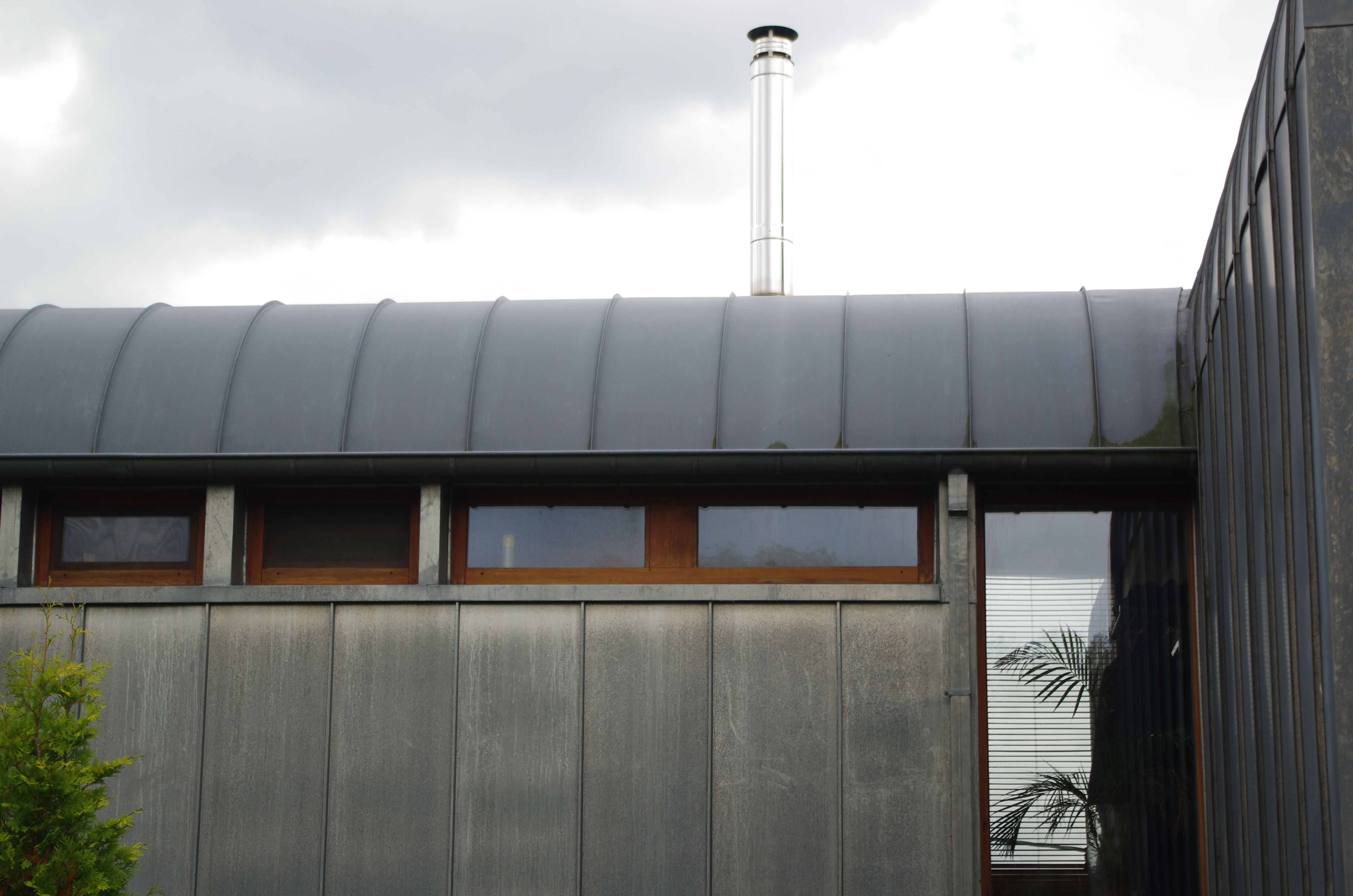 Ce thème « ouvert/relié/intime », « vie professionnelle/vie de couple/solitude », est repris par la courbure des volumes qui s’ouvrent sud-est et sud-ouest, par la proportion et le choix des ouvertures (bains de lumière ou vues) et par mes matières : couvertures et bardage en zinc à l’arrière, bardage de cèdre vertical sur les autres faces.